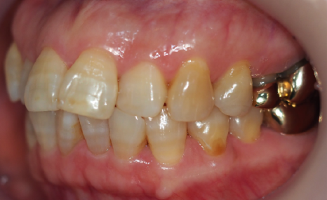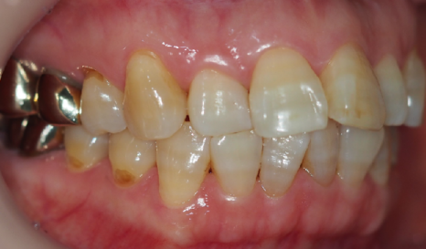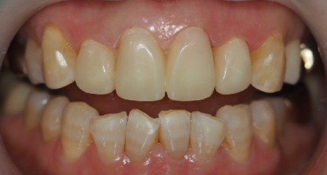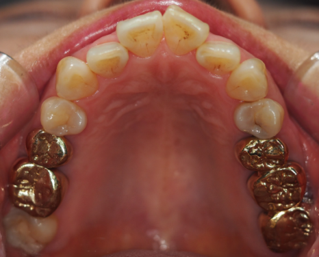 또한, 상악의 앞니에 보철을 넣기 위해서 하악의 삐뚤빼뚤한 부분은 삭제를 통해서 어느 정도 정리를 했답니다.
