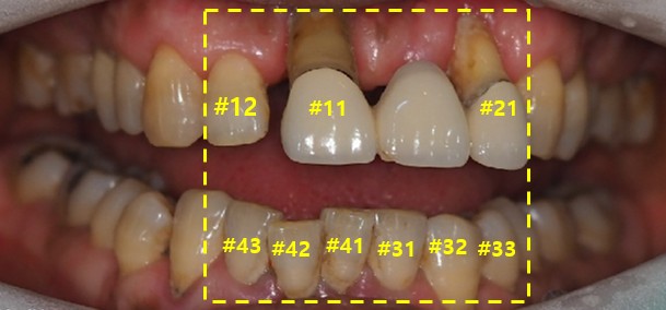 상악 #15 12 11 21 치아들은 임플란트 치료를 진행했습니다.